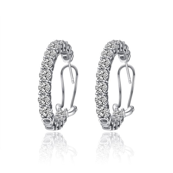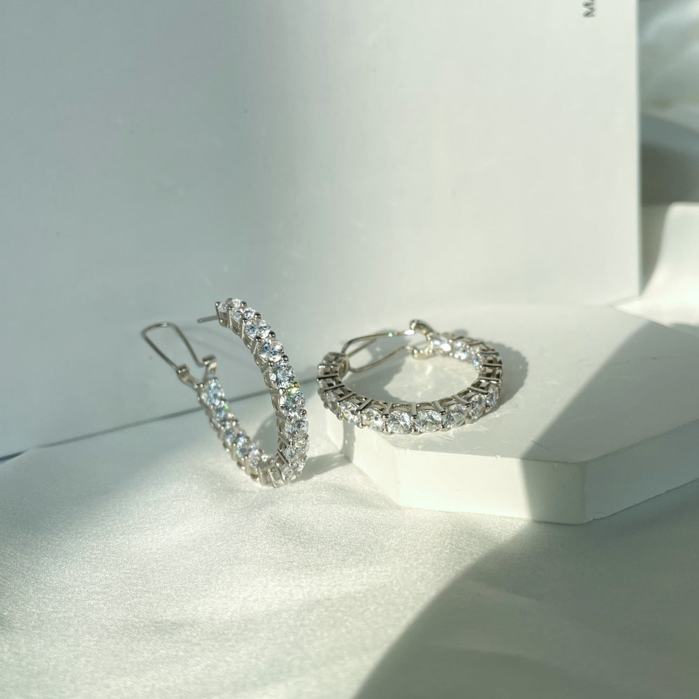 Silver & Simulated Diamond Large Hoop Earrings