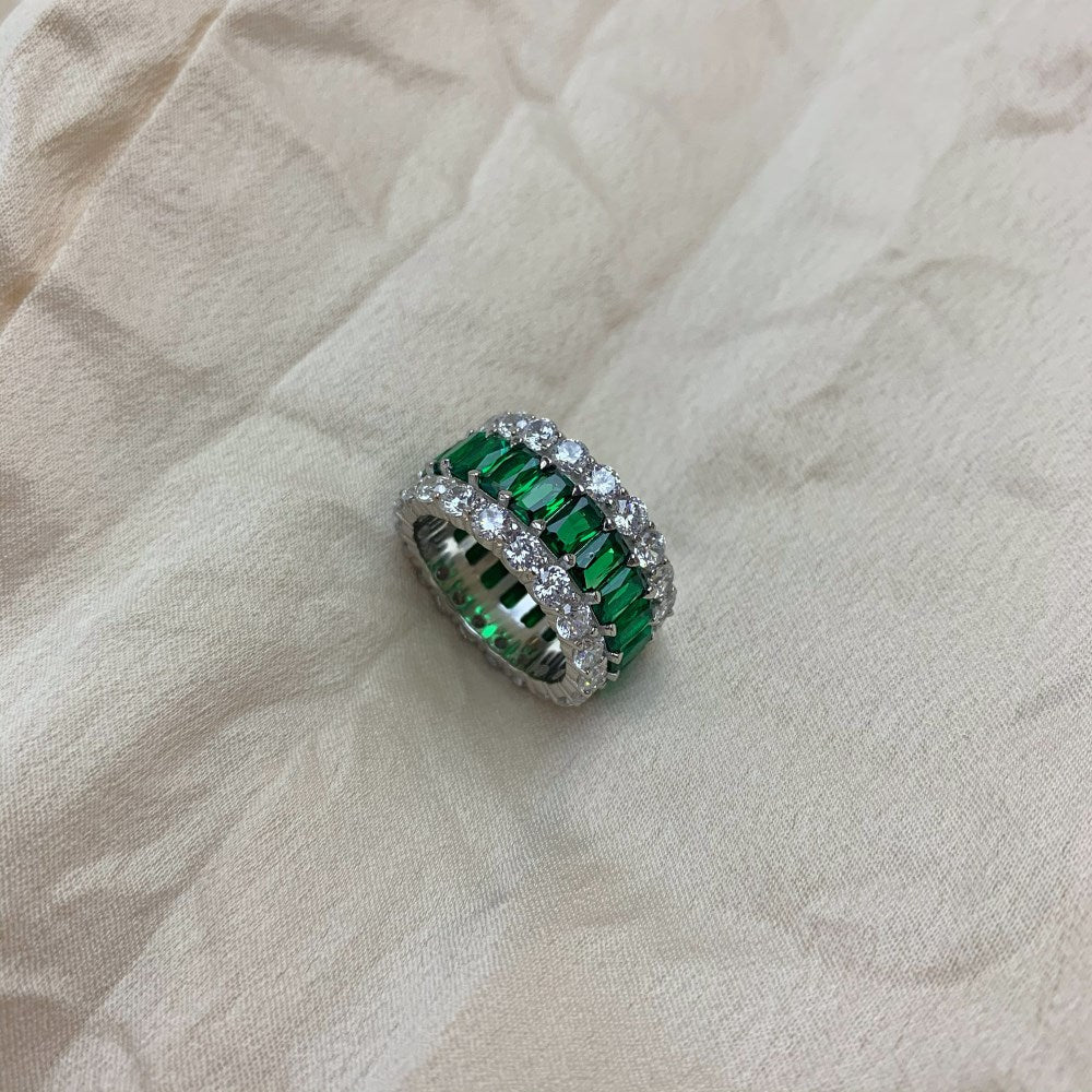 Silver Triple Eternity Simulated Emerald Ring